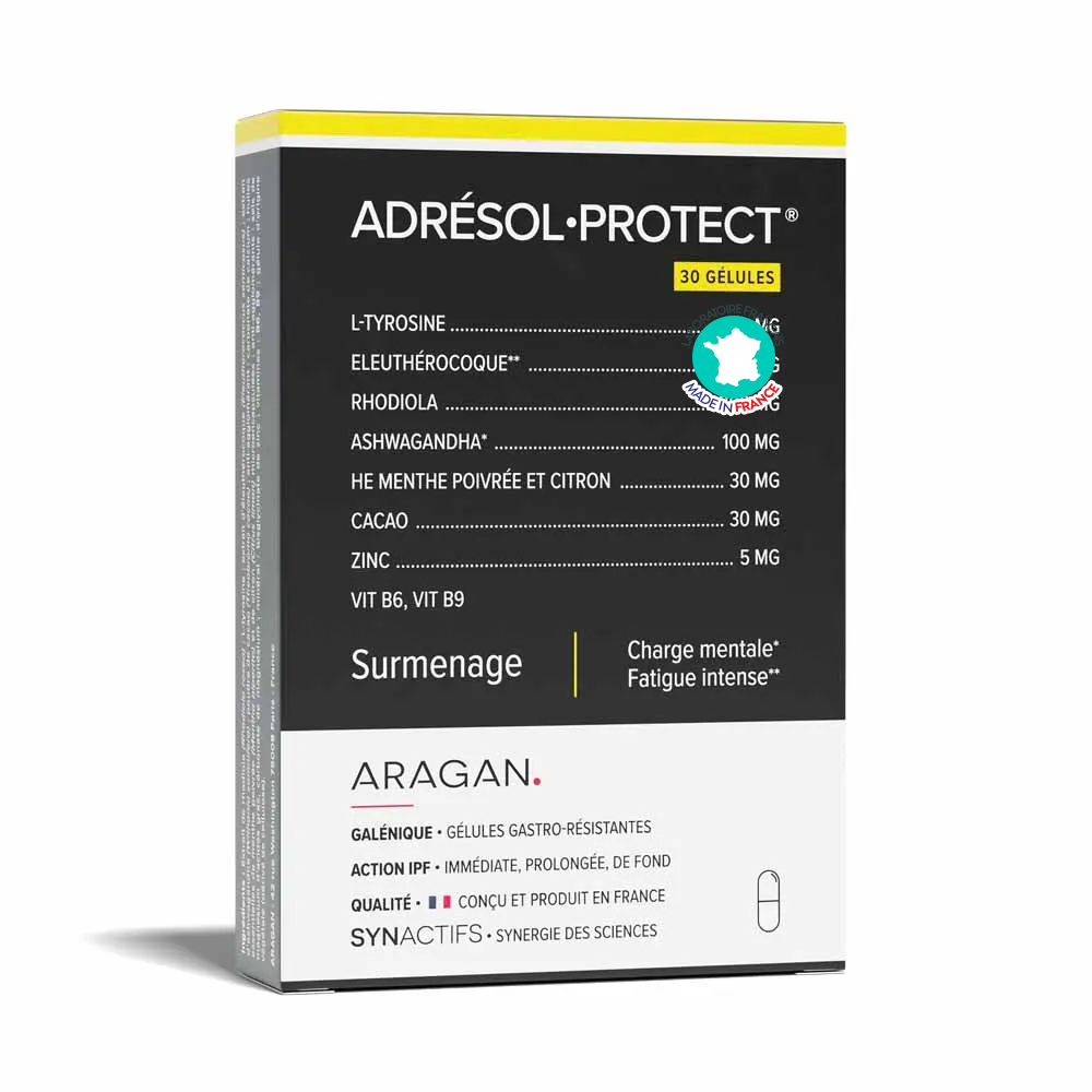 Informations sur Adrésol Protect Surmenage Aragan 30 gélules – Charge mentale, stress et fatigue intense