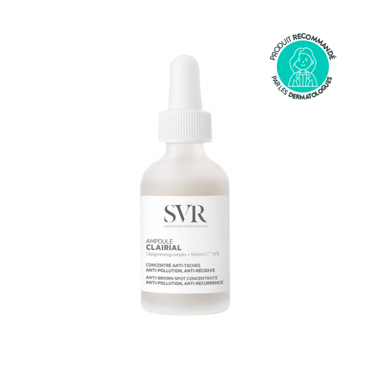 Un soin éclaircissant pour estomper les taches, utilisez l’Ampoule Clairial Concentré Anti-Tâches Anti-Pollution Anti-Récidive de SVR.