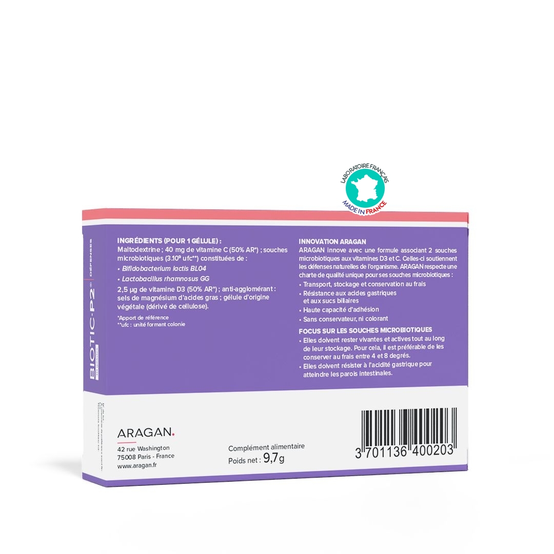 Informations sur Biotic P2 Défenses Aragan 30 gélules – Probiotiques & immunité