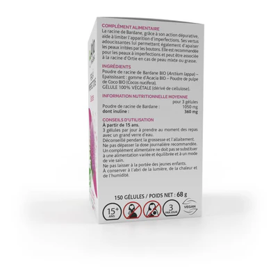 Informations sur Arkopharma Arkogélules BIO Bardane Purification & équilibre de la peau 150 gélules