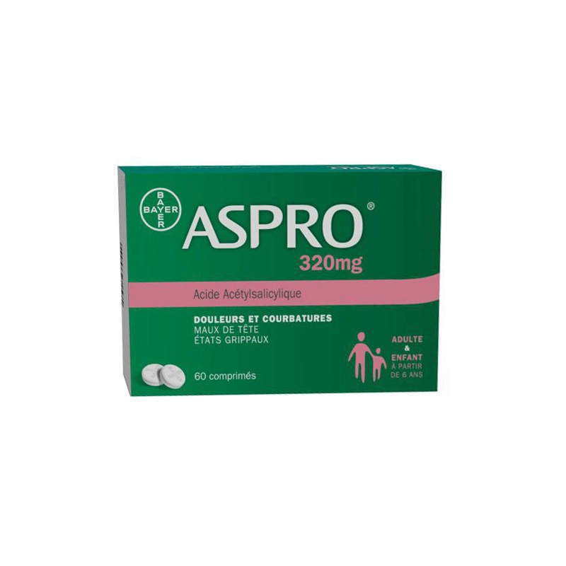 - Aspro aspirine 320 mg est utilisé contre les maux de tête, douleurs dentaires et courbatures.