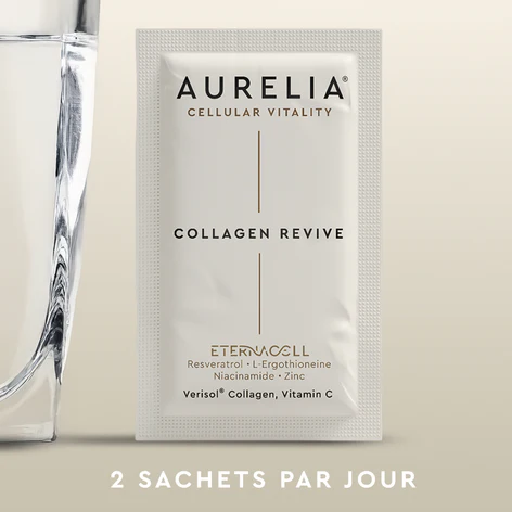 Aurelia Collagen Revive est un complément alimentaire au collagène formulé pour réduire les rides, améliorer la fermeté et l’élasticité de la peau et raviver l’éclat du teint. Sa formule associe le complexe ETERNACELL™, du collagène VERISOL® et de la vitamine C pour soutenir la beauté de la peau de l’intérieur.