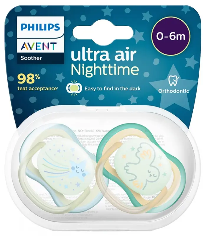 PHILIPS AVENT SUCETTE ULTRA AIR NIGHT ORTHODONTIQUE 0-6 MOIS : UNE SUCETTE PHOSPHORESCENTE POUR LES NUITS SEREINES DES NOURRISSONS