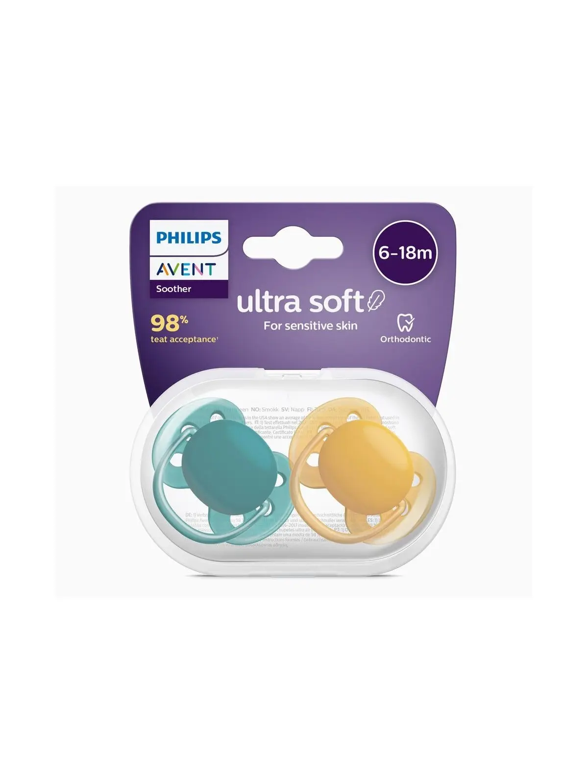 Philips Avent Sucettes ultra soft neutre 6-18 mois lot de 2 – sucette orthodontique peau sensible