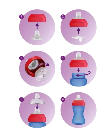- Inspecter régulièrement la valve et le bec souple — remplacer dès les premiers signes d'usure pour garantir l'étanchéité et la sécurité de bébé.