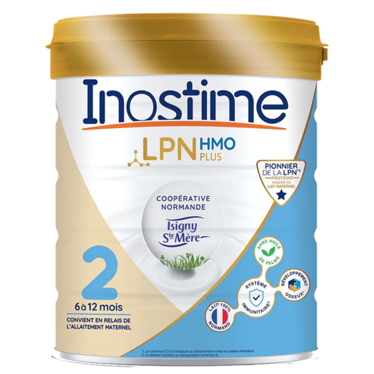 Le Lait 3ème âge 12 à 36 mois Inostime LPNHMO PLUS de la marque Biostime est un lait infantile nouvelle génération riche en LPN1, une protéine présente dans le lait maternel. Il contribue à la croissance osseuse et au renforcement des défenses naturelles du corps grâce aux vitamines A, C et D dans sa formule. Riche en fer, ce lait participe au développement cognitif normal.