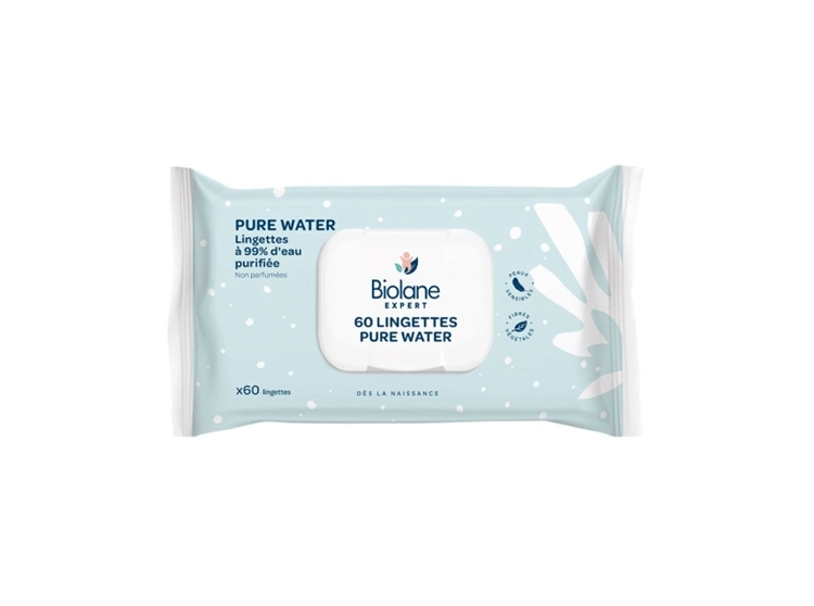 Informations sur Biolane Lingettes Pure water 60 lingettes – lingettes bébé eau pure