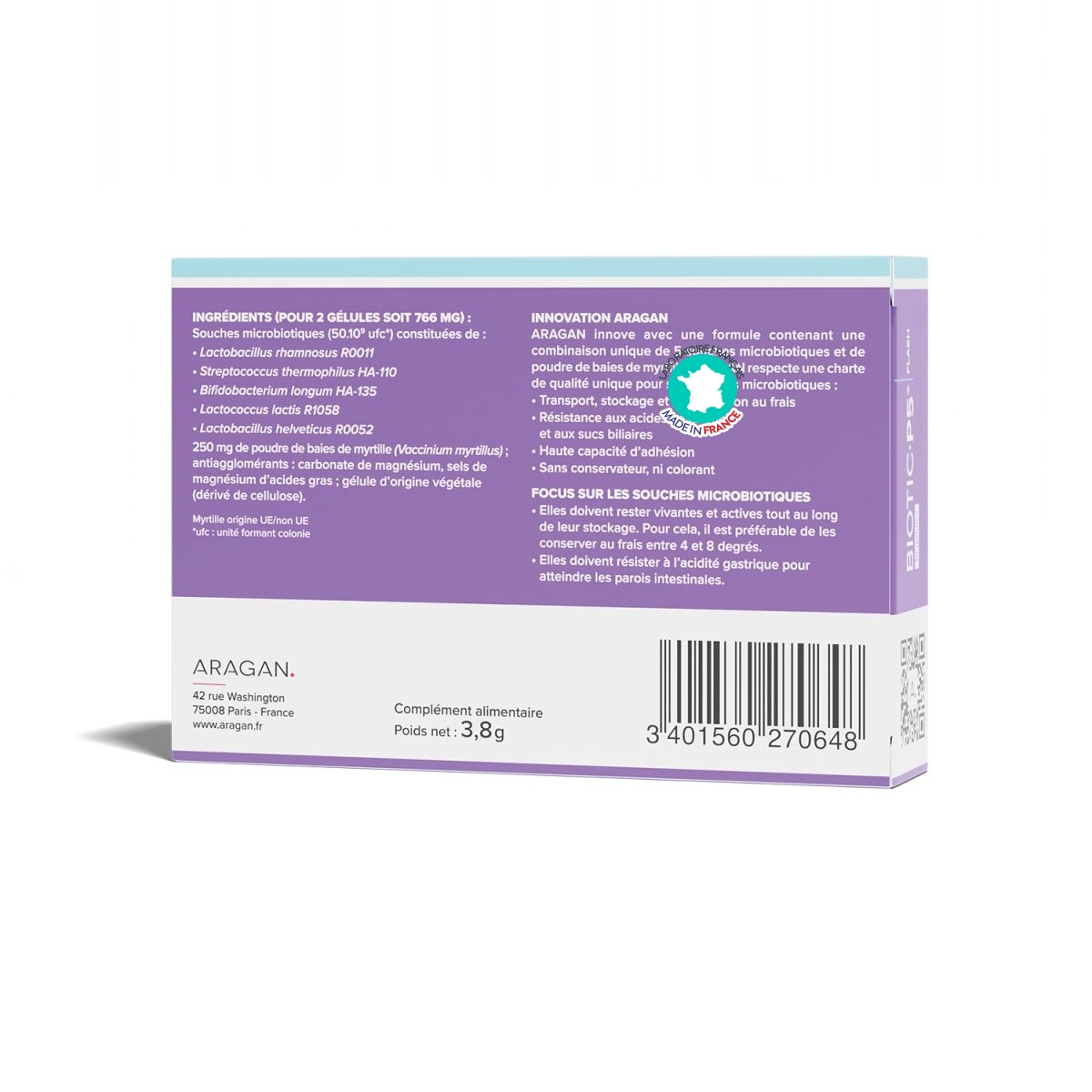 Formule développée par le laboratoire Aragan pour une action probiotique rapide et ciblée.