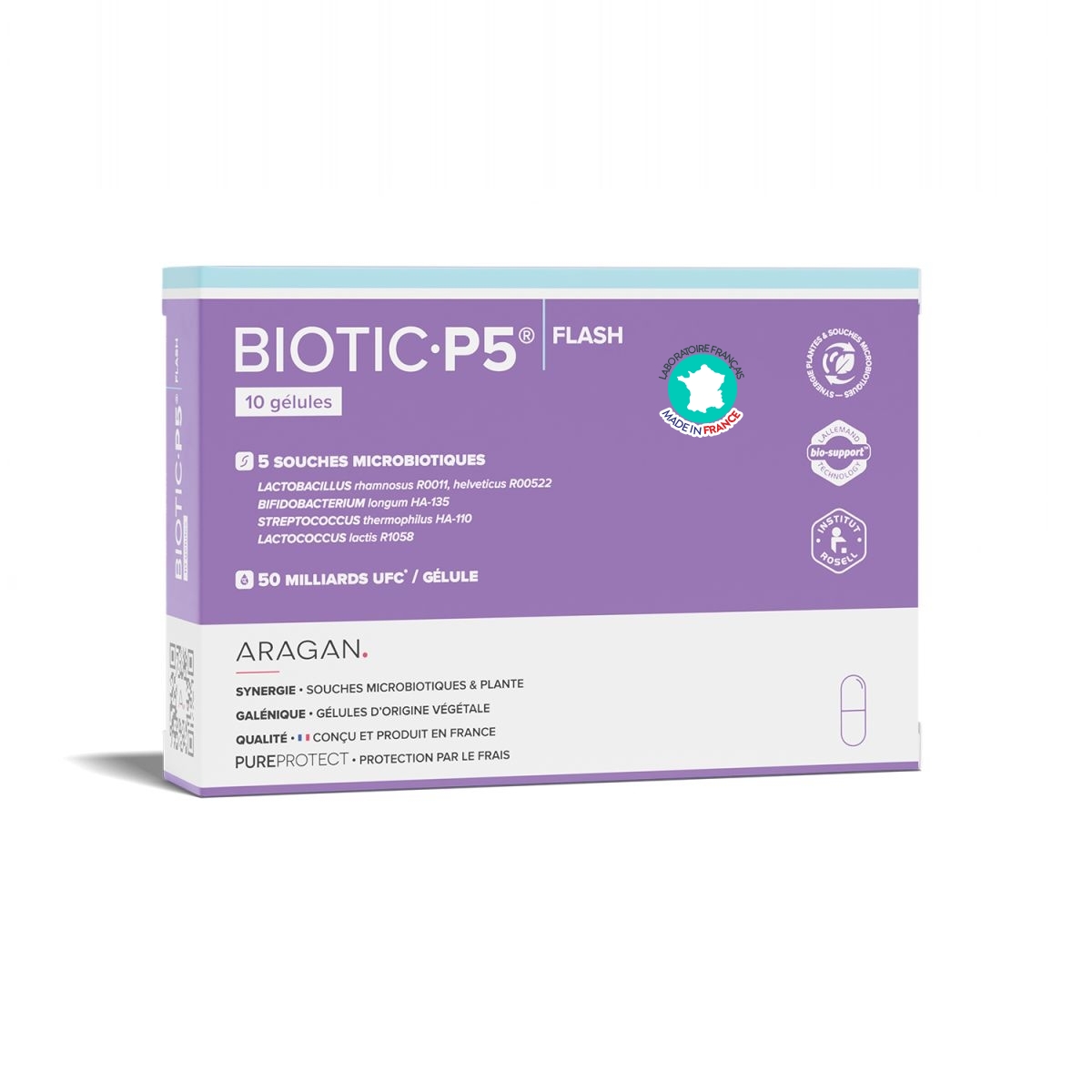 Informations sur Biotic P5 Flash Aragan 10 gélules – Flore intestinale et action probiotique intensive