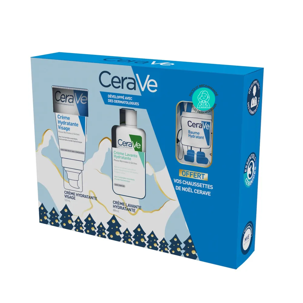 Informations sur CeraVe Coffret Crème Hydratante PM Visage + Crème Lavante Hydratante + Chaussettes Offertes — Hydratation & barrière cutanée