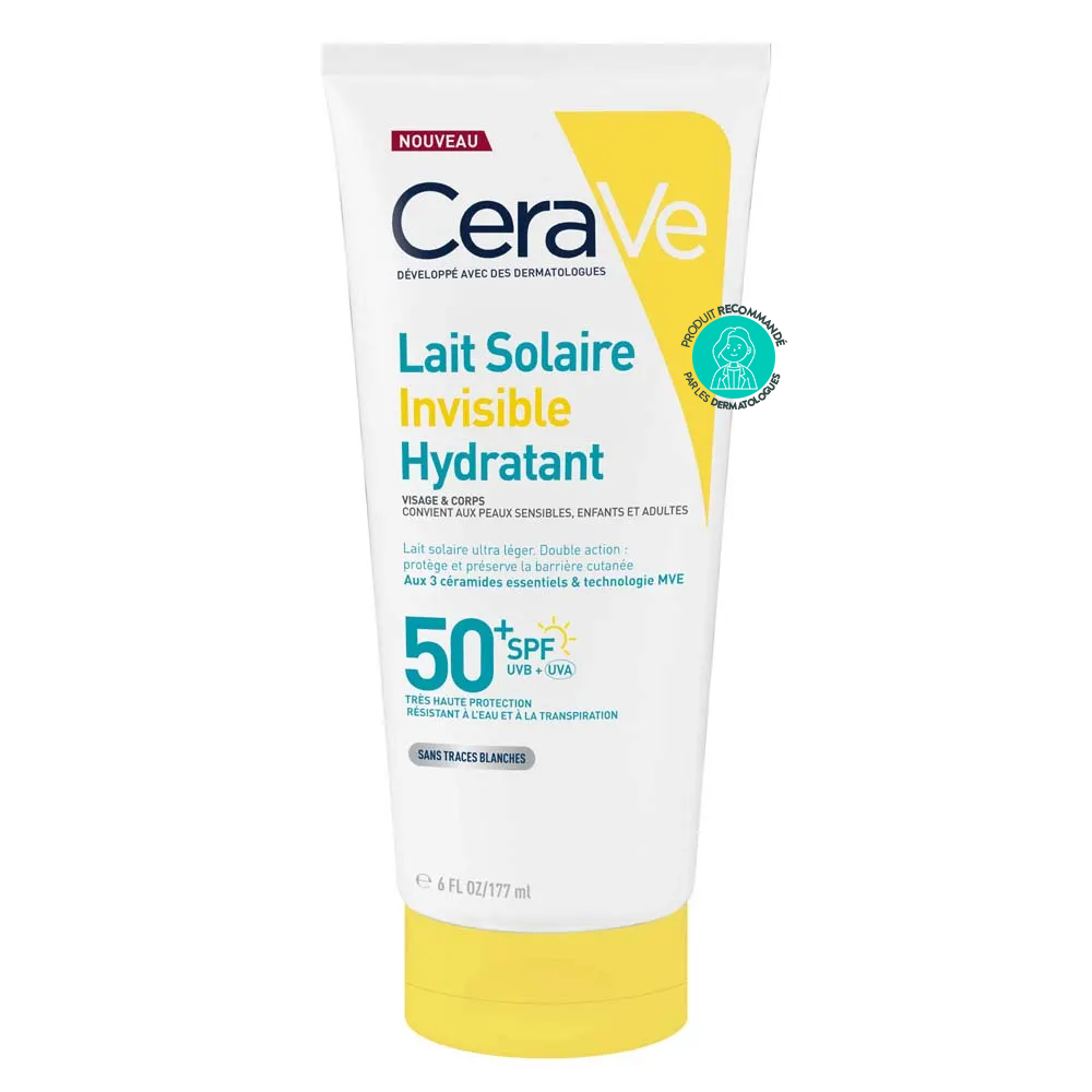 CERAVE LAIT SOLAIRE INVISIBLE HYDRATANT SPF50+ : LA PROTECTION TRÈS HAUTE INDICE AU COMPLEXE CÉRAMIDES POUR TOUTE LA FAMILLE