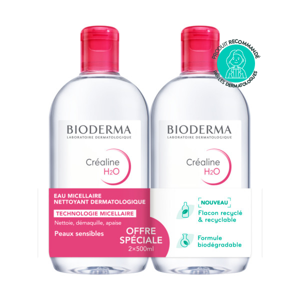 Informations sur Bioderma Créaline H2O duo peaux très sèches – Eau micellaire démaquillante visage et yeux 2 x 500 ml
