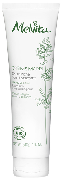 La Crème Mains Sèches Extra Riche Bio de Melvita est parfaite pour les mains abimées et sèches tout en soulageant et en protégeant la peau avec sa texture onctueuse.