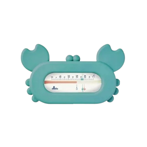 - Thermomètre de bain Dodie crabe conçu pour mesurer précisément la température de l’eau du bain de bébé.