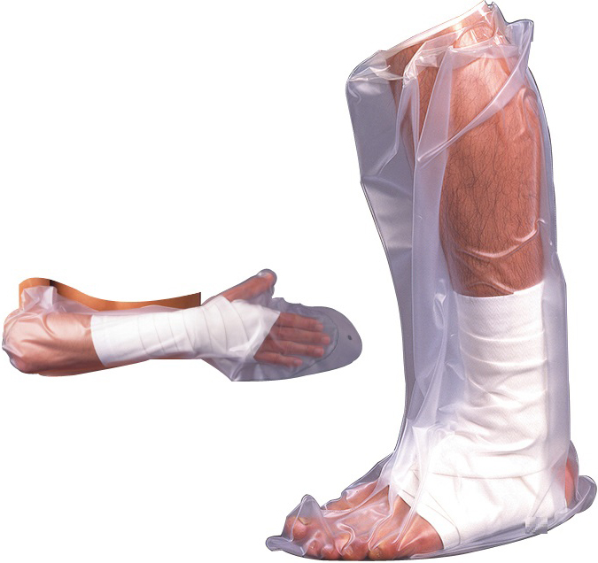 Pour prendre une douche ou un bain, il suffit d'enfiler la housse par dessus le plâtre ou le bandage.