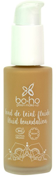 Le Fond de teint Fluide Bio 05 Miel de Bo Ho Green Revolution unifie le teint pour une couvrance naturelle et légère.