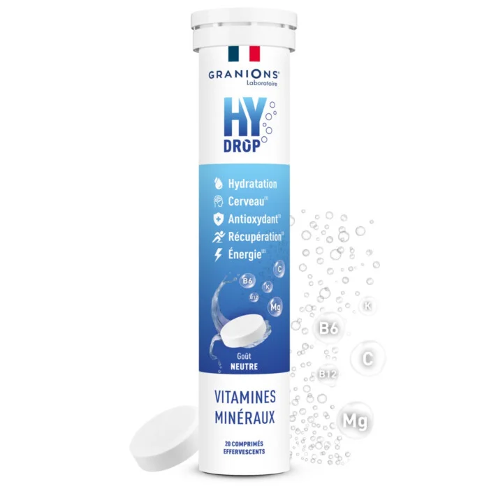 Les pastilles HYDROP Neutre des Laboratoires Granions constituent une réponse scientifique précise aux besoins d'hydratation de l'organisme. Savoir qu'une perte de seulement 2 % de l'eau corporelle peut réduire les performances de 20 % souligne l'importance des électrolytes. Ces minéraux chargés électriquement régulent les échanges d'eau entre les cellules et le sang. La formule HYDROP associe le Sodium, le Potassium et le Magnésium pour assurer la conduction nerveuse et la réactivité des fibres musculaires. L'ajout de vitamines du groupe B et de vitamine C renforce le métabolisme énergétique tout en protégeant les tissus du stress oxydatif. Sans sucres et sans additifs superflus, ces pastilles permettent de transformer n'importe quelle source d'eau en une boisson de réhydratation isotonique efficace, idéale pour compenser les pertes liées à la sueur, à la chaleur ou à une alimentation déséquilibrée, tout en respectant l'équilibre glycémique.