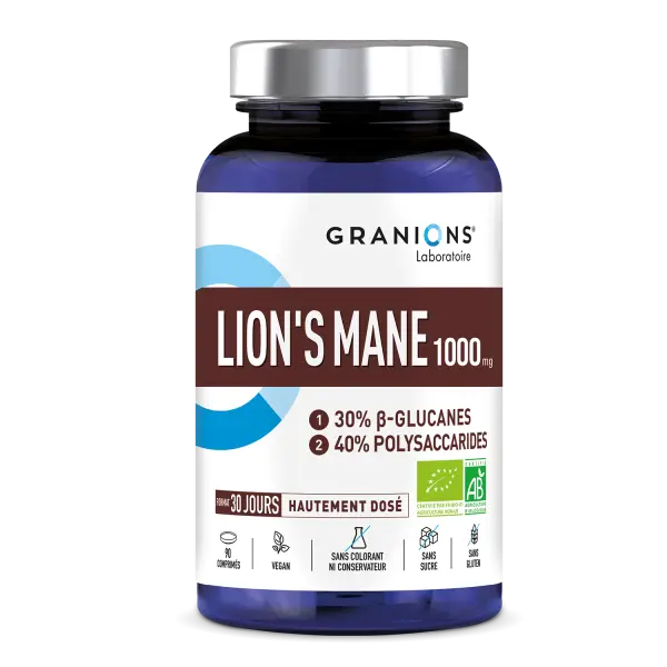 GRANIONS LION'S MANE 1000 MG : LE CHAMPIGNON NEURO-ACTIF POUR LA MÉMOIRE ET LA CONCENTRATION