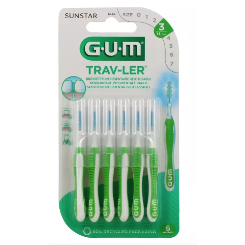 Informations sur GUM Trav‑ler 1,1 mm – brossettes interdentaires 6 pièces