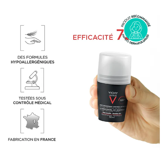 Informations sur Vichy Déodorant Homme Anti-Transpirant Contrôle Extrême 72H Lot de 2 x 50 ml
