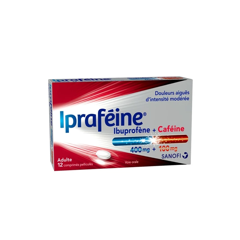 Iprafeine 400 mg/100 mg 12 comprimés Ibuprofène + caféine – Médicament contre les douleurs aiguës d'intensité modérée