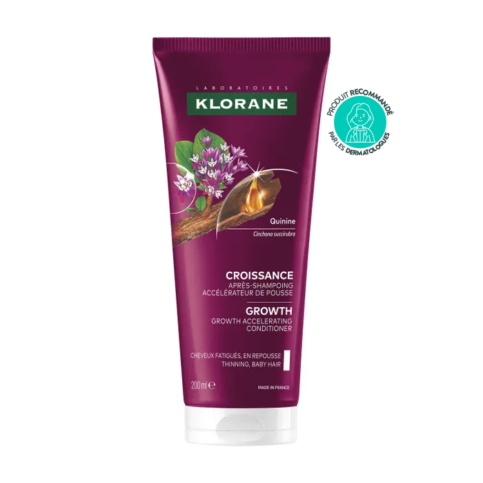 - Klorane Quinine Croissance après-shampooing accélérateur de pousse 200 ml pour stimuler la pousse des cheveux tout en renforçant la fibre capillaire.