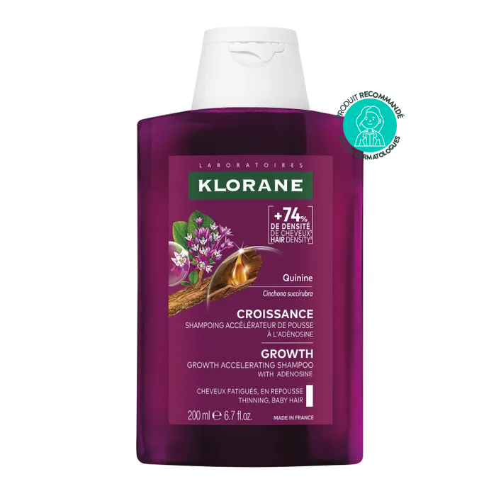 - Klorane Quinine Croissance shampooing accélérateur de pousse 200 ml conçu pour stimuler la pousse des cheveux et favoriser une chevelure plus dense et résistante.