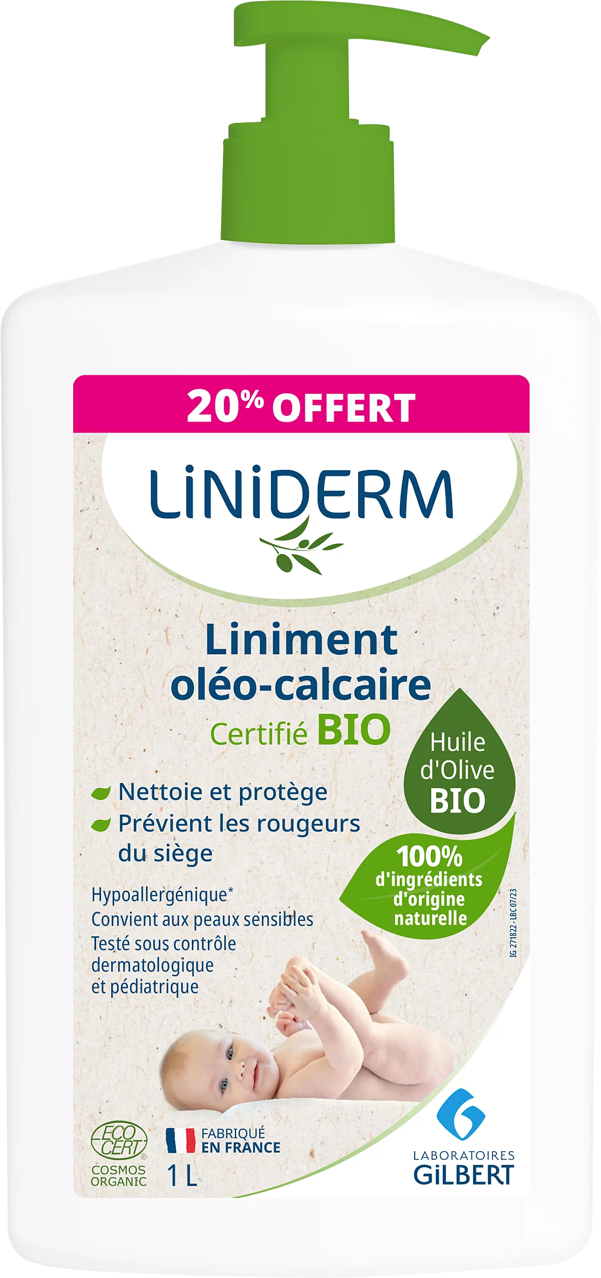 Gilbert Liniderm Liniment oléo-calcaire bio 1 L – liniment bébé protecteur change avis