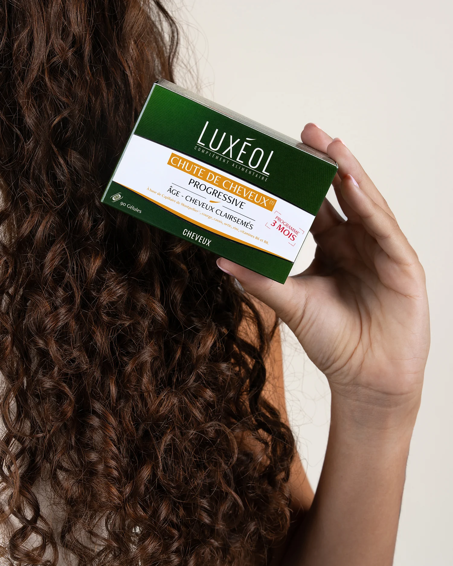 Utiliser Luxéol Chute de cheveux progressive 3 mois – 90 gélules antichute, densité et vitalité capillaire
