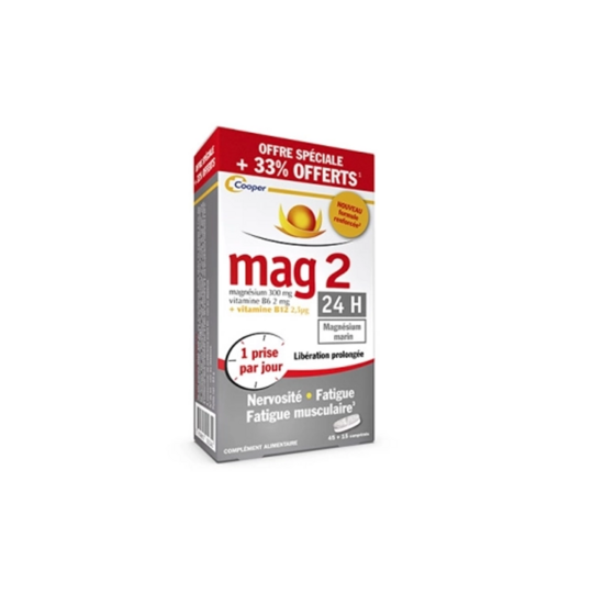 Vous vous sentez fatiguées mentalement et physiquement pour affronter vos journées de travail ! Faites le plein d'énergie avec Mag2 24 h Magnésium Marin de Cooper, un complément alimentaire revitalisant pour vous procurer un coup de tonus mental et physique, et rester dynamique au quotidien