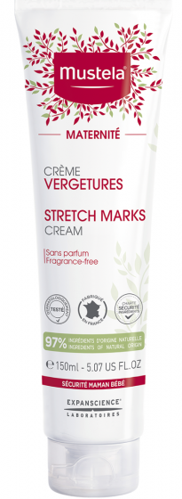 Afin de lutter contre les vergetures durant la matérnité, utilisez la Crème Prévention Vergétures Sans Parfum de Mustela.