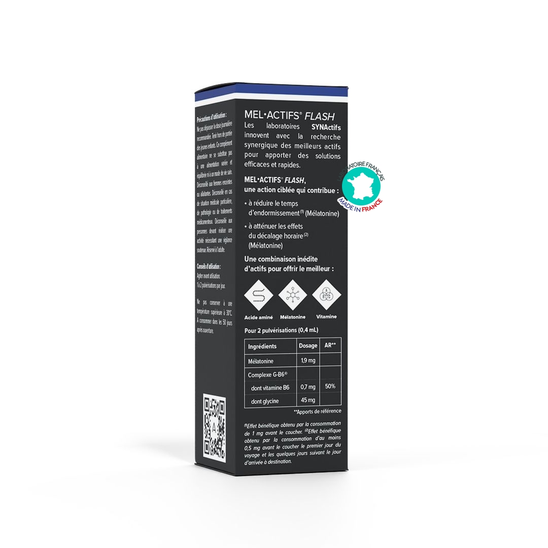 Mel Actifs® Flash Aragan apporte une solution ciblée et rapide grâce à sa forme spray, favorisant une assimilation rapide de la mélatonine, idéale lorsque le besoin est ponctuel ou immédiat.