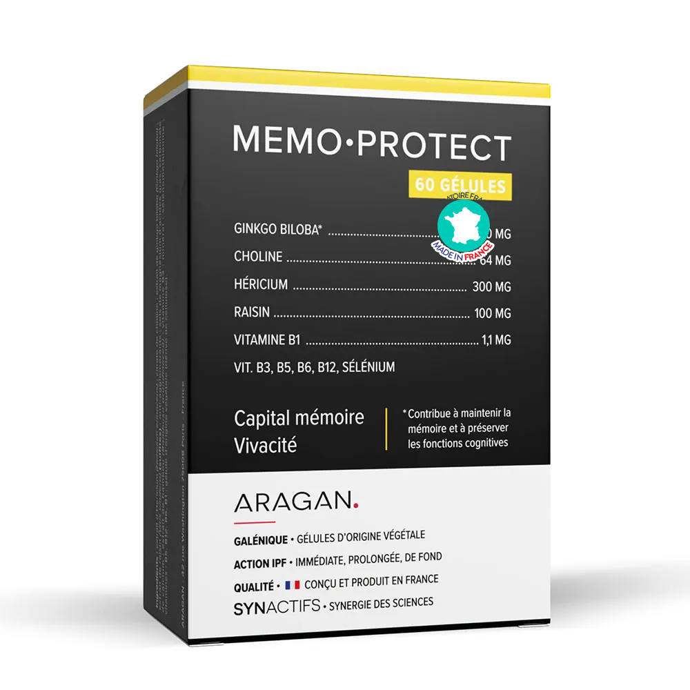 Informations sur MemoProtect Aragan 60 gélules – Capital mémoire et fonctions cognitives