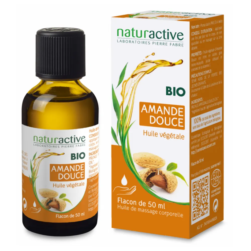 Utiliser Naturactive Huile végétale amande douce bio 50 ml – huile nourrissante peau et cheveux
