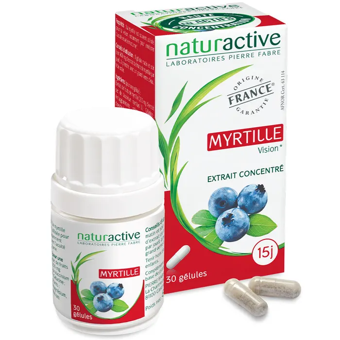 - Complément alimentaire Naturactive Myrtille 30 gélules pour soutien de la vision nocturne et de l’acuité visuelle naturelle.