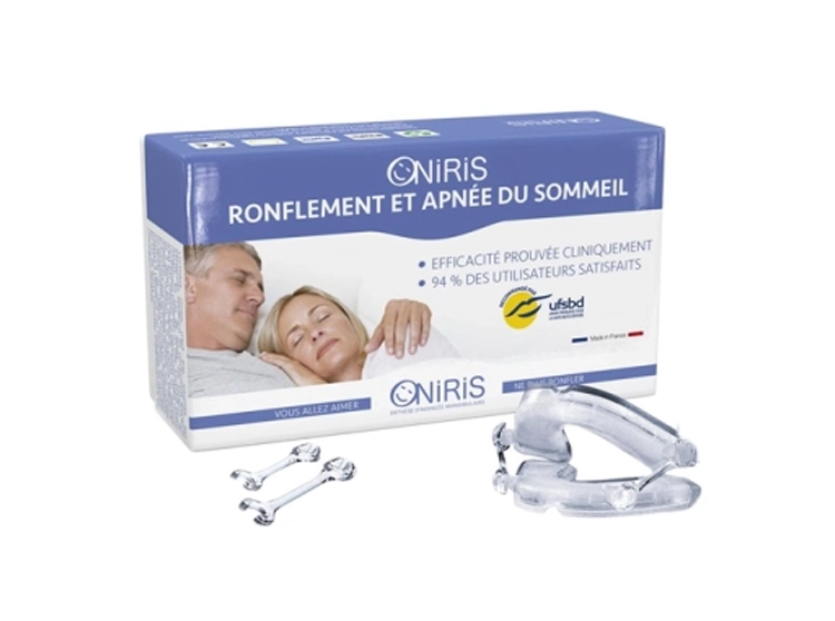 L’Oniris Plus Orthèse mandibulaire anti-ronflement est une gouttière dentaire qui agit mécaniquement sur les causes du ronflement.