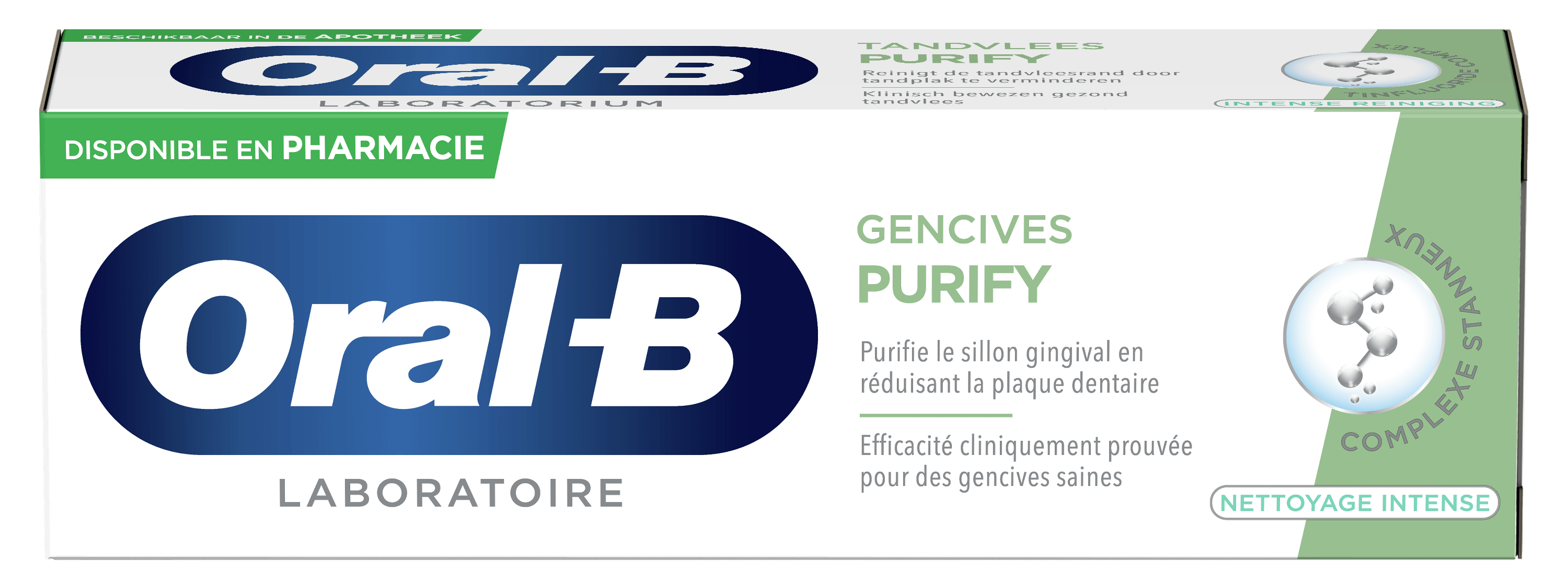 Le Dentifrice Gencives Purify de Oral B permet de nettoyer en profondeur les recoins de votre dentition et de vos gencives pour préserver la santé de l'intérieur de votre bouche.
