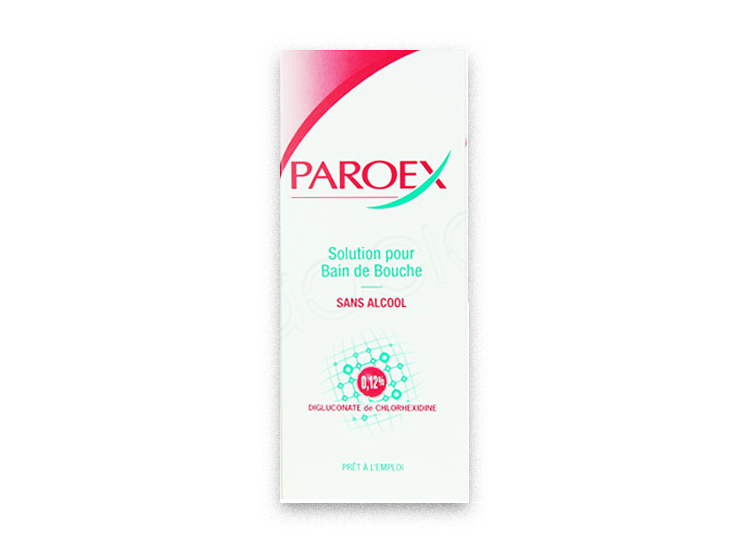 Utilisation locale en bains de bouche. Se brosser les dents avant chaque utilisation et rincer soigneusement la bouche à l’eau avant d’utiliser PAROEX.