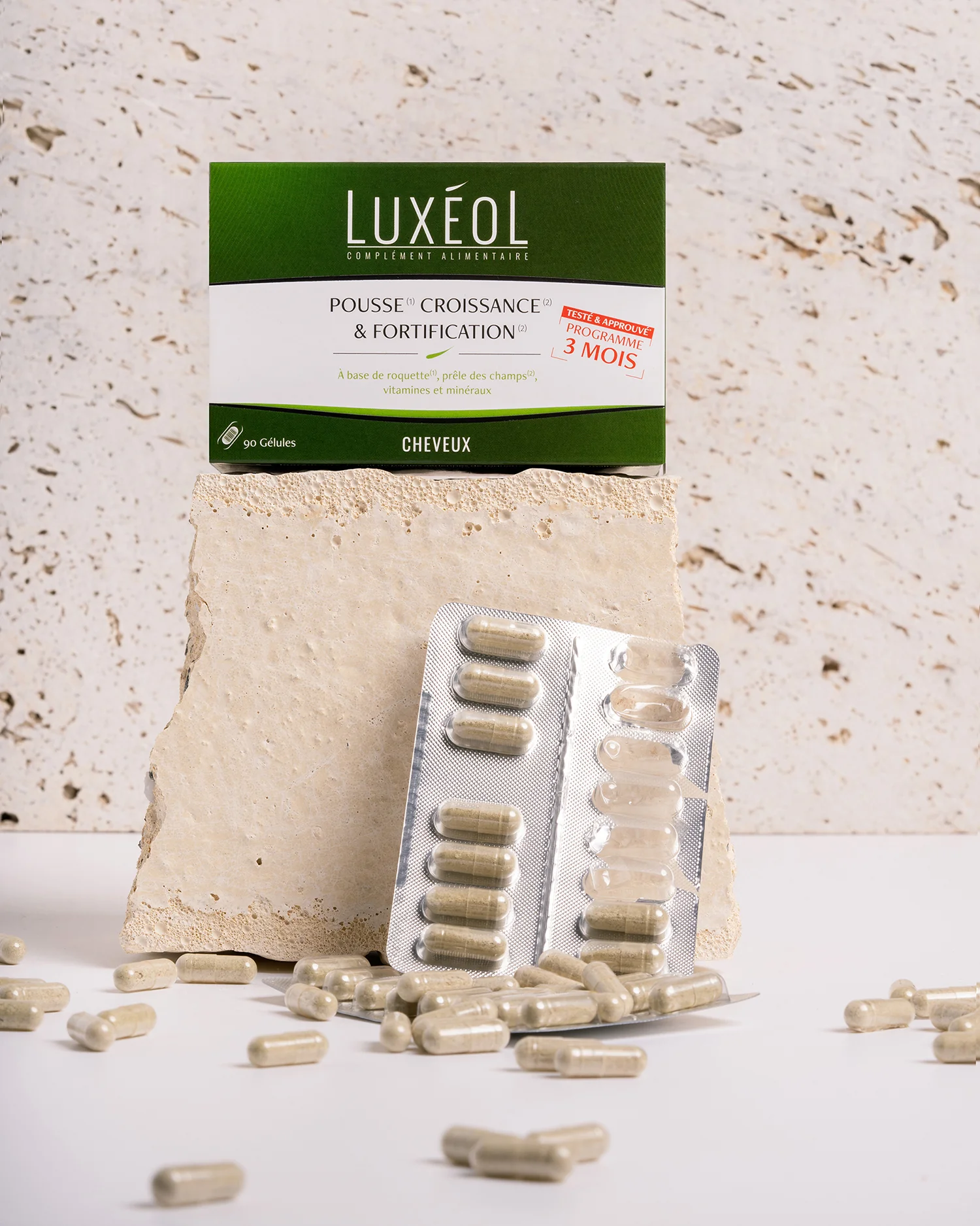 Utiliser Luxéol pousse croissance et fortification 90 gélules – Stimule la pousse, renforce le cheveu et améliore la densité
