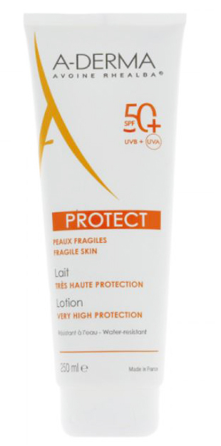 Afin de vous protéger de tous dommages causés par les UV, utilisez le Lait Solaire Protect SPF 50+ d’A-Derma.