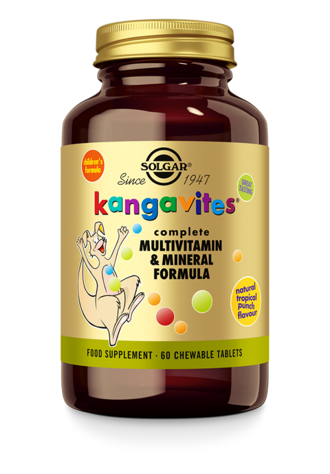 Solgar Kangavites™ Tropical Punch est un complexe complet associant vitamines, minéraux et concentrés alimentaires, spécifiquement formulé pour répondre aux besoins nutritionnels des enfants en période de croissance.
