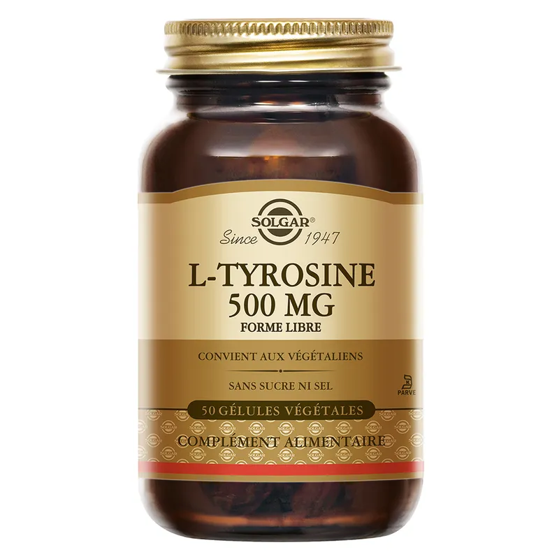 Informations sur Solgar L-Tyrosine 500 mg – Acide aminé précurseur de la dopamine – 50 gélules
