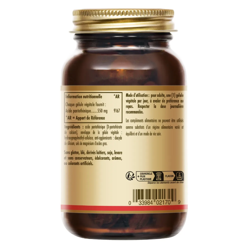 Utiliser Solgar Vitamine B5 Acide Pantothénique 550 mg 50 gélules végétales énergie métabolique & vitalité