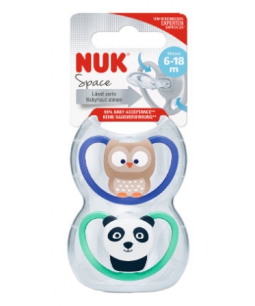 Utiliser Sucettes Silicone Space 6-18 Mois Motifs HIBOU/PANDA - Lot de 2 sucettes