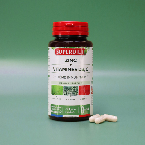 Informations sur Superdiet Zinc + Vitamines D3, C 60 gélules immunité, énergie & protection cellulaire