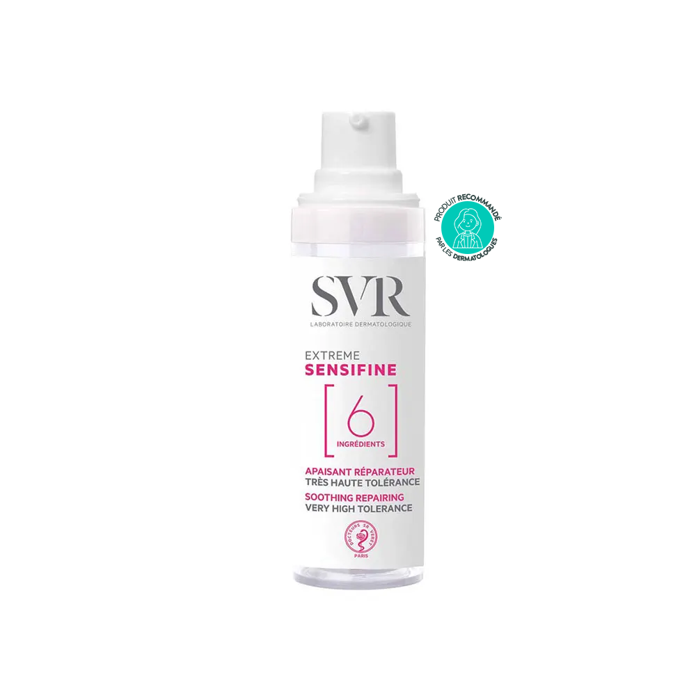 Le SVR Sensifine Extrême 30 ml est un soin hydratant formulé pour les peaux ultrasensibles, intolérantes ou allergiques. Avec seulement 9 ingrédients, il apaise instantanément, hydrate intensément et renforce la barrière cutanée sans provoquer d’irritation. Sa texture gel-crème fond sur la peau pour un confort immédiat.
