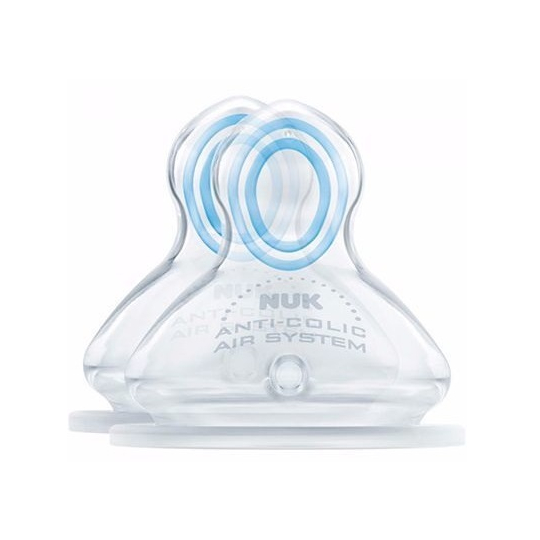 De qualité souple, la Tétine en silicone Taille M 2e Âge de Nuk est anatomique et adaptée à la mâchoire de bébé. La soupape anti-coliques empêche toute aspiration d´air et réduit ainsi le risque de coliques.Le joint perfect-fit situé sous la tétine est ultra épais garantit une tenue parfaite et étanche de la tétine sur le goulot du biberon.