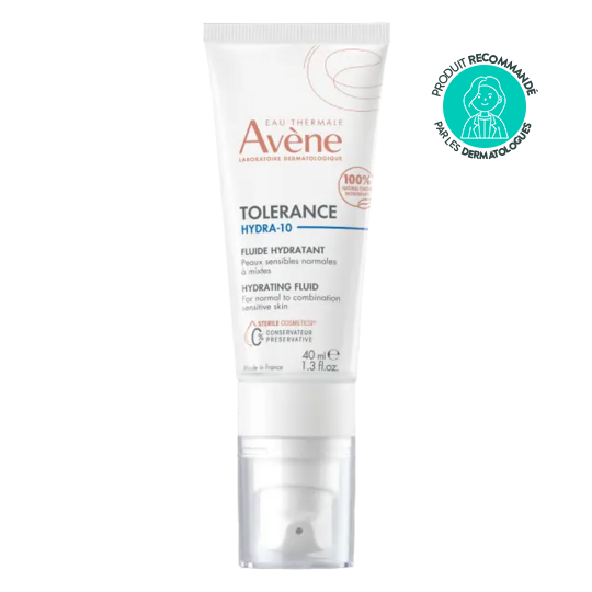 Le Fluide Hydratant Tolérance Hydra 10 d'Avène est formulé à base d'ingrédients 100% d'origine naturelle pour offrir une meilleure tolérance à tous les types de peaux. Il convient à tous les âges pour hydrater en profondeur la barrière cutanée pendant 48 heures grâce à l'acide hyaluronique contenue dans sa composition. La peau devient douce et apaisée et est protégée contre le dessèchement cutané.