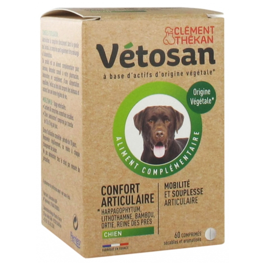 Vetosan Confort Articulaire de Clément Thékan est un complément alimentaire destiné aux chiens en cas de boitements à froid ou encore de raideur ou douleur articulaire.