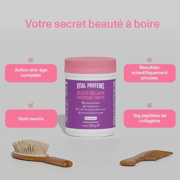 Avec l’âge, la production naturelle de collagène diminue, entraînant une perte de fermeté, l’apparition de rides et une déshydratation cutanée. Vital Proteins Beauty Collagen agit de l’intérieur grâce à une synergie d’actifs scientifiquement étudiés.
